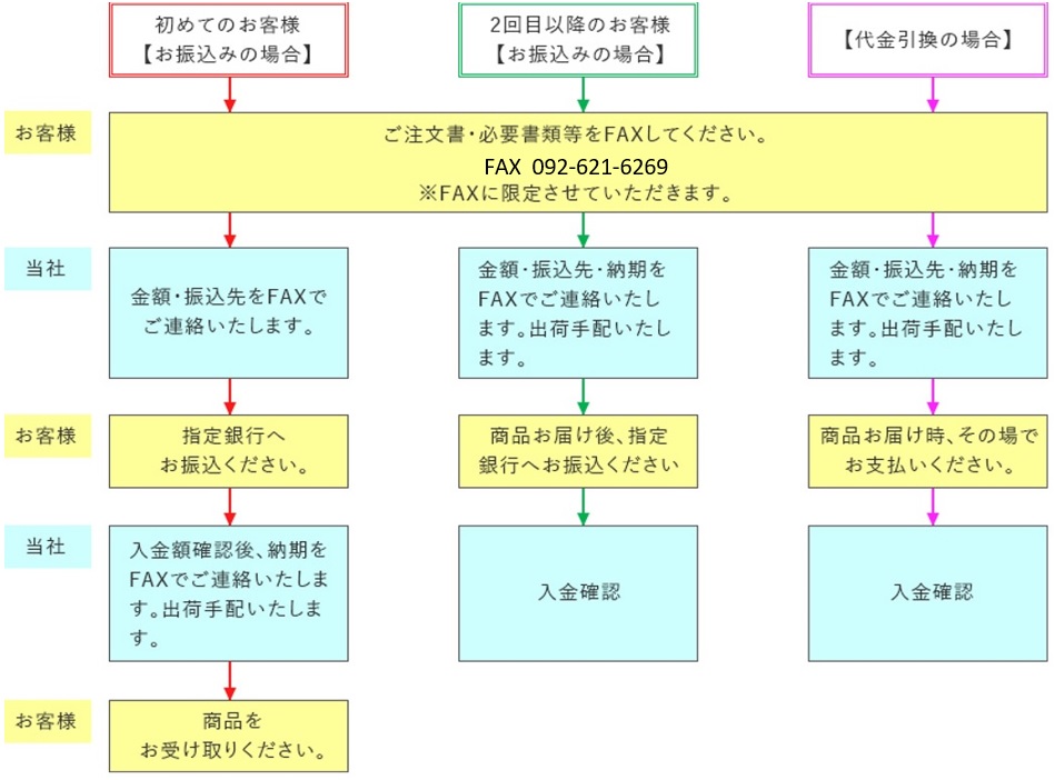 ○上記以外で直接当社とお取り引きの場合、事前に商品代金を当社指定銀行へお振り込み願います。