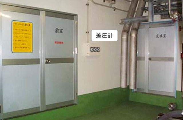 充填室はクリーンルーム仕様です。陽圧管理を行っています。